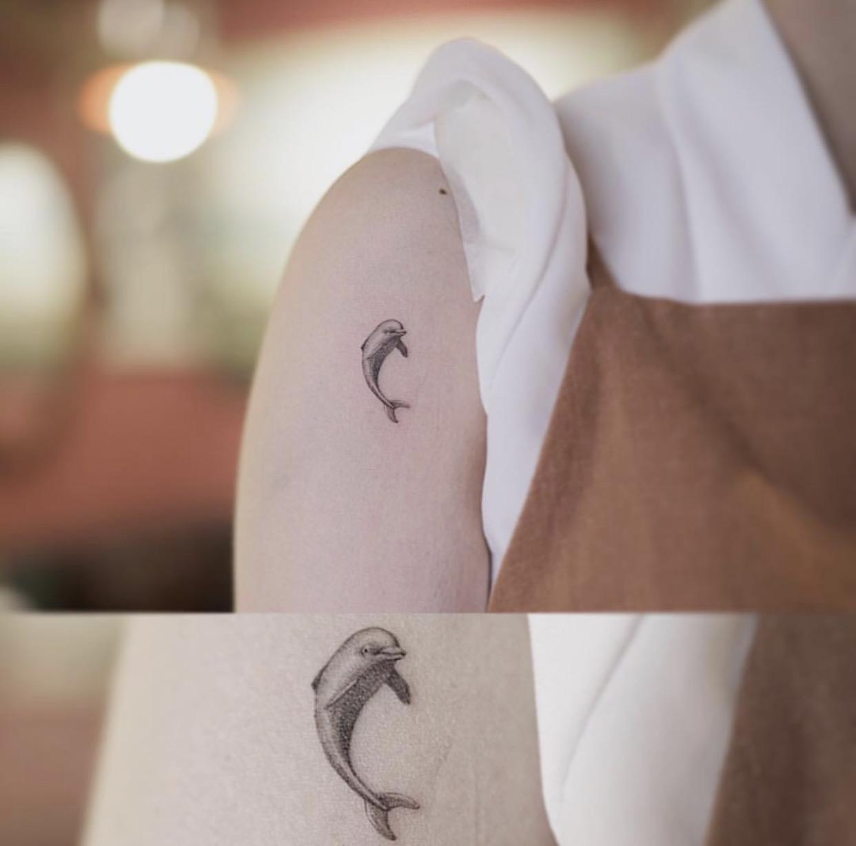相信许多去过海洋馆的朋友,一定对一种动物极为喜爱,那就是海豚,憨态可掬,性格乖巧。而在纹身当中,海豚虽然并非是主流纹身题材,但因为其“温顺、善良”、“爱情守护神”等等极好的寓意,也深受广大女性纹身爱好者的青睐。尤其是小清新风格中,海豚纹身可是有着举足轻重的地位。